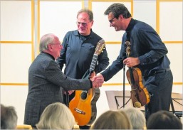 Die Musikschulleiterin Claudia de Vries stellte in einer kurzen, informativen Einführung die beiden Künstler vor, ebenso den anwesenden Komponisten Rudolf Kelterborn, dessen Uraufführung der Anlass für dieses Konzert war. Es war das einzige Werk im Programm, das original für diese Besetzung geschrieben wurde. Mit einem Cantabile des Violinvirtuosen Paganini, der auch Gitarre gespielt hatte, eröffneten die Musiker ihr Konzert. Corti nahm das Publikum von Beginn weg ein mit dem sensiblen Ton seiner Bratsche und einer wunderbaren Gestaltung der Melodien; Jonkers überzeugte als einfühlsamer Begleiter.