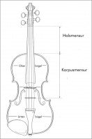 - Die Distanz zwischen f-Lochkerbe (= Stegposition) und Deckenrand ergibt die sogenannte Deckenmensur.