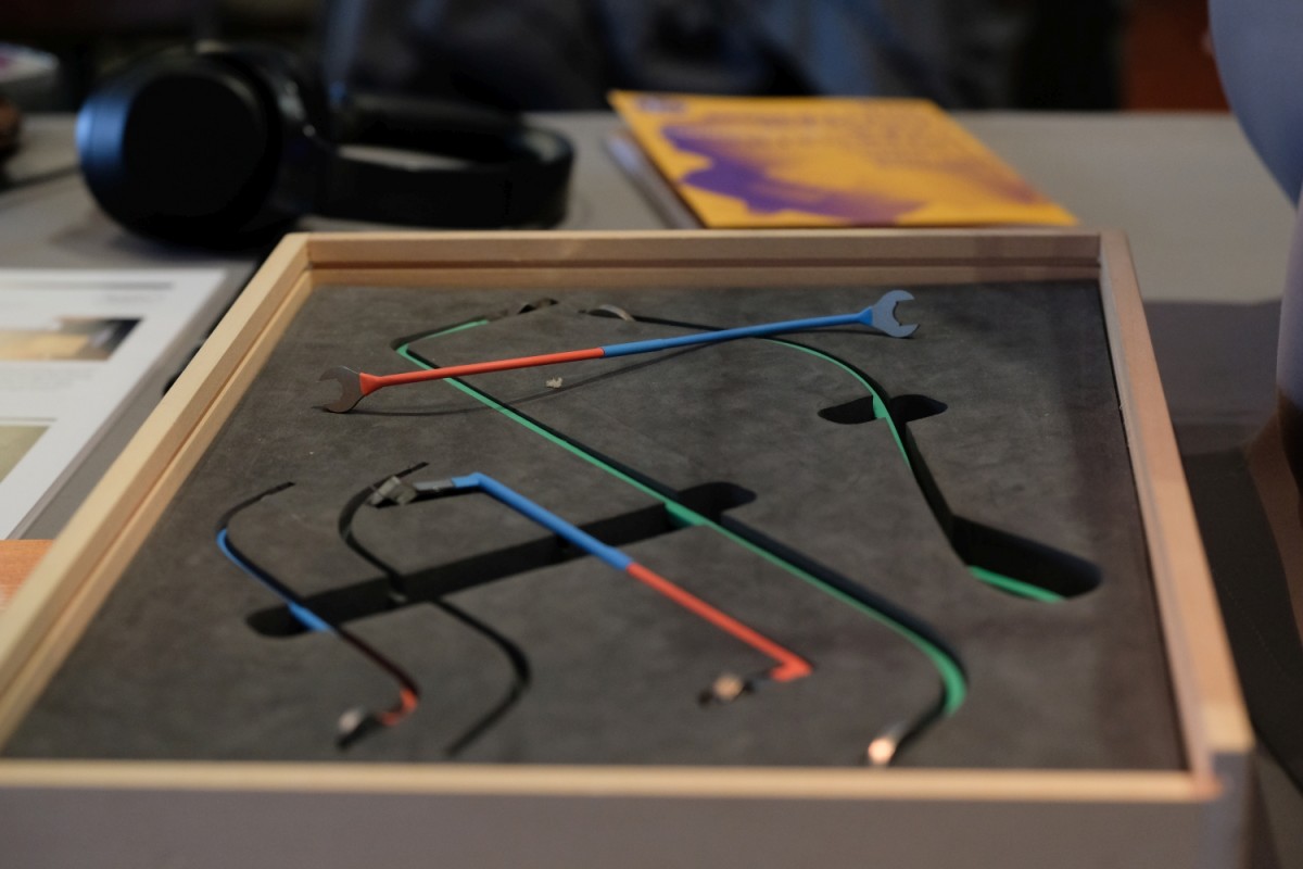 Die Anima Nova wird durch das Auge des F-Loches eingeführt, da sie etwas grösser ist als herkömmliche Stimmstöcke. Wir reden von einem Durchmesser von 7 Millimetern. Zur Positionierung und Längeneinstellung gibt es Spezialinstrumente.