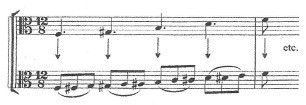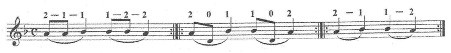 Noch deutlicher weichen meine Fingersätze für die Doppelgriffe von jenen anderer Tonleiterschulen ab. Meiner Meinung nach erzeugen konventionelle Wechselfingersätze unnötige Spannungen in der linken Hand und erschweren ein geschmeidiges Legato für Terzen und Sexten. In einem Musikstück ist es oft besser, parallele Intervalle anstatt mit Wechselfingersätzen mit dem gleichen Fingersatzpaar zu spielen (beispielsweise zwischen zwei grossen Sexten):