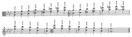 Roger Benedict - Die Tonleiternwerke Fleschs und Galamians sind in Lehrinstitutionen auf der ganzen Welt anzutreffen und haben sich zweifellos bewährt. Daneben gibt es selbstverständlich auch andere – etwa von etablierten Urheber:innen wie Mogill und Ševčík, oder neueren Datums von Barbara Barber und Simon Fischer. Allen ist jedoch eines gemeinsam: Es sind ursprünglich Violinmethoden, welche für die Viola angepasst wurden.