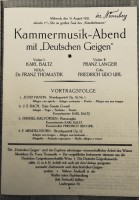 Seit einem Jahr spiele ich die Geige Nr 62 aus dem Jahre 1924. Im Repertoire habe ich nicht nur die 6 Solosonaten Bachs und die 12 Fantasien Telemanns, sondern auch 12 Ton Werke von Emil Himmelsbach
