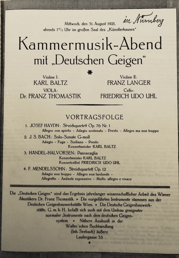Da wird es wohl nicht mehr lange dauern, bis der Impuls im Geigenbau von Franz Thomastik wieder aufgegriffen wird.