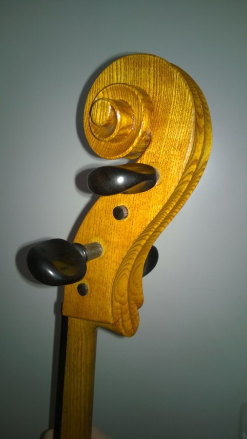 So gebrauche ich eben einen extra langen Feinstimmer für die A-Saite und bei der C-Saite muss ich die Umwicklung am Wirbelende abpfriemeln, dass die Saite ordentlich über den Sattel geht. Nicht immer gelingt diese Bastelei.