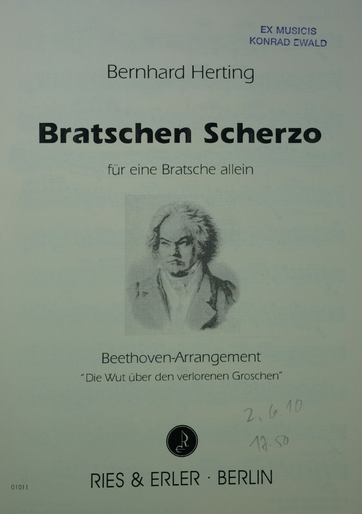 Bratschen-Scherzo. Beethoven-Arrangement «Die Wut über den verlorenen Groschen», für Bratsche