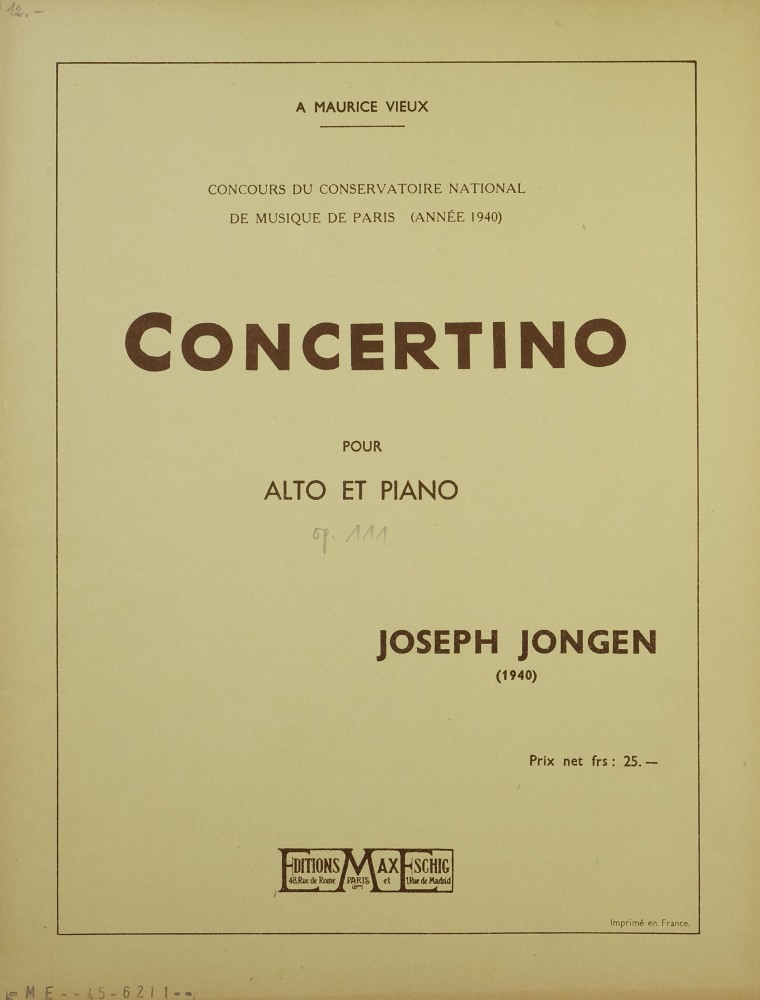 Concertino, op. 111, für Bratsche und Orchester (Klavier)