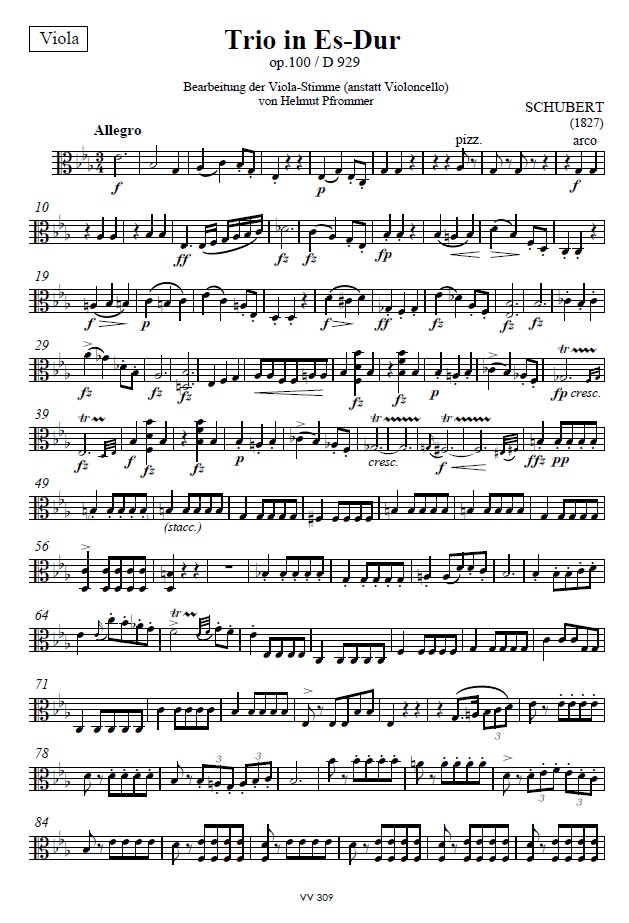 Klaviertrio Es-Dur, op. 100, Einzelstimme Bratsche (anstatt Violoncello)