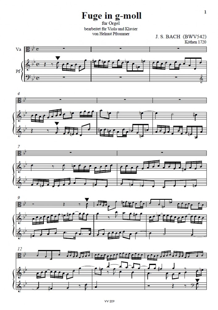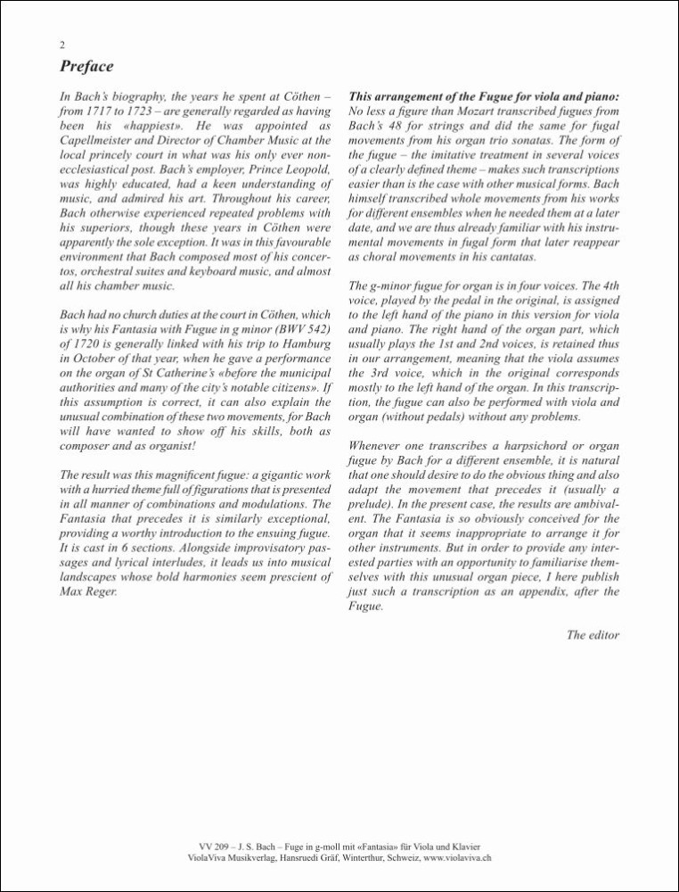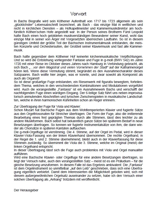 Fuge mit Fantasie g-moll, BWV 542, für Bratsche und Klavier