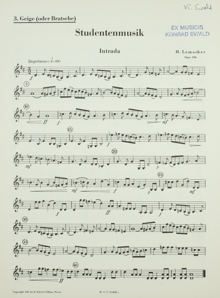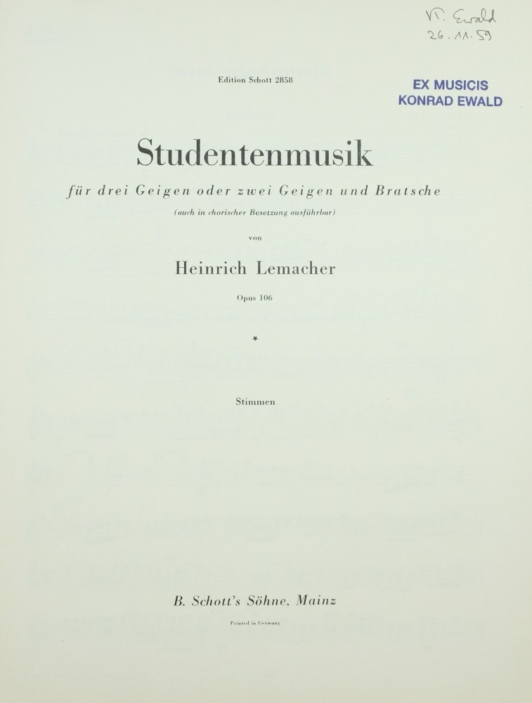 Studentenmusik, op. 106, für 2 Violinen und Bratsche (oder 3 Violinen)