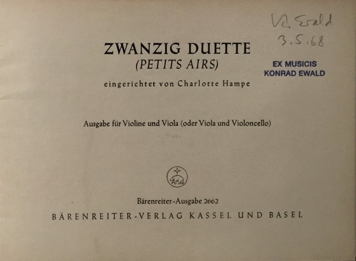 Petits Airs. 20 Duette, für Violine und Bratsche (oder Bratsche und Violoncello)