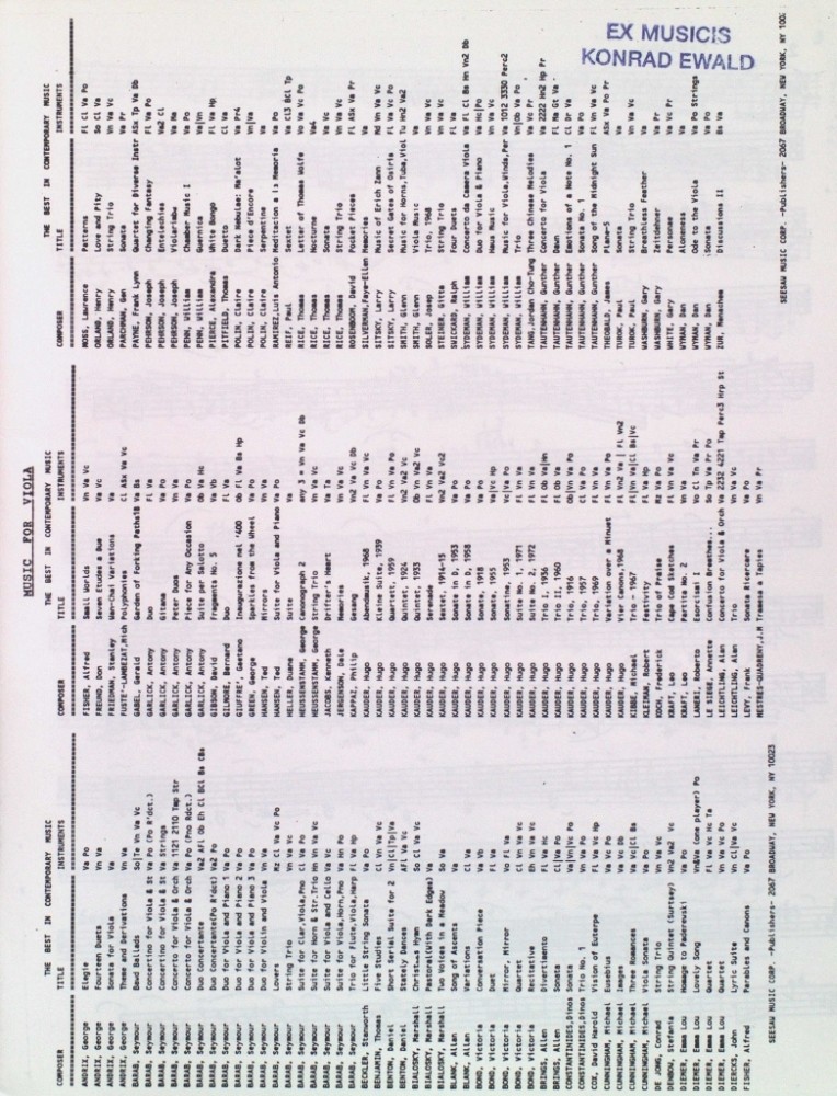 Ewald · Directory «Musik für Bratsche», CH, 2013