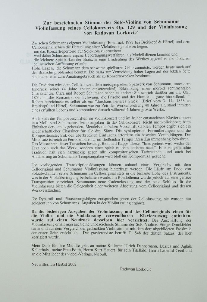 Violoncellokonzert, (op. 129), für Violoncello, arrangiert für Bratsche
