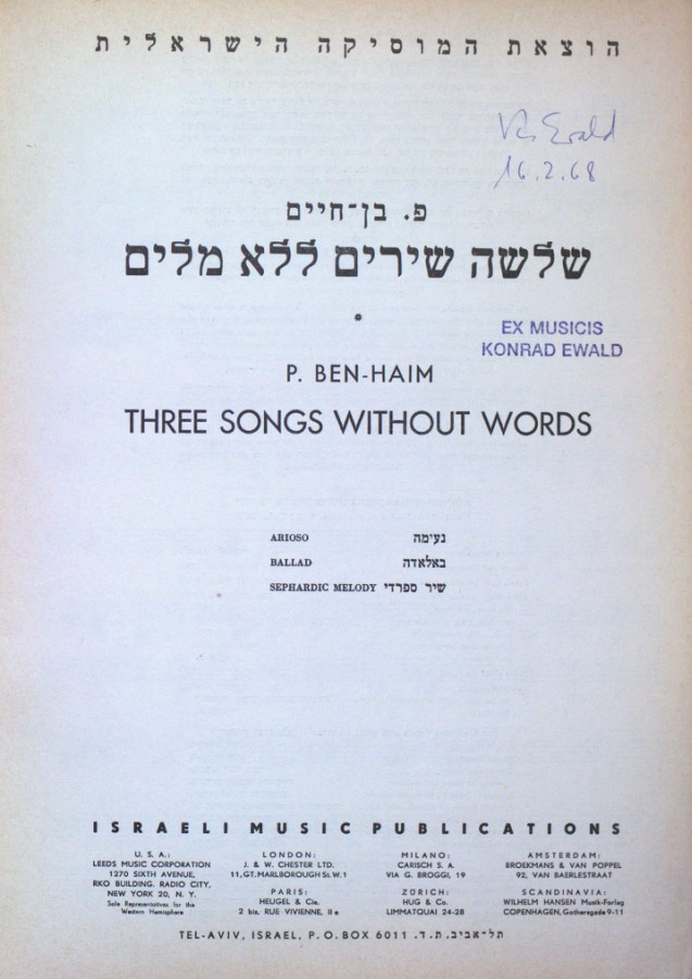 Edition: Israeli Music Publ., 1953 (IMP125)